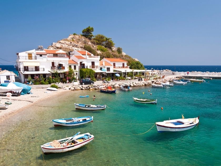 Burada gerçekleştiriceğimiz panaromik molamız sonrasında Samos Adası'nın güneybatısında bulunan ve Pisagor’un doğum yeri olarak kabul edilen Pythagorion kentine doğru yol almak üzere harekete geçtiğimiz de yolların üzerinde bizleri karşılayan üzüm bağlarını görüyor ve bir kez daha adanın neden ünlü bir Şarap adası olduğunun farkına varıyoruz.